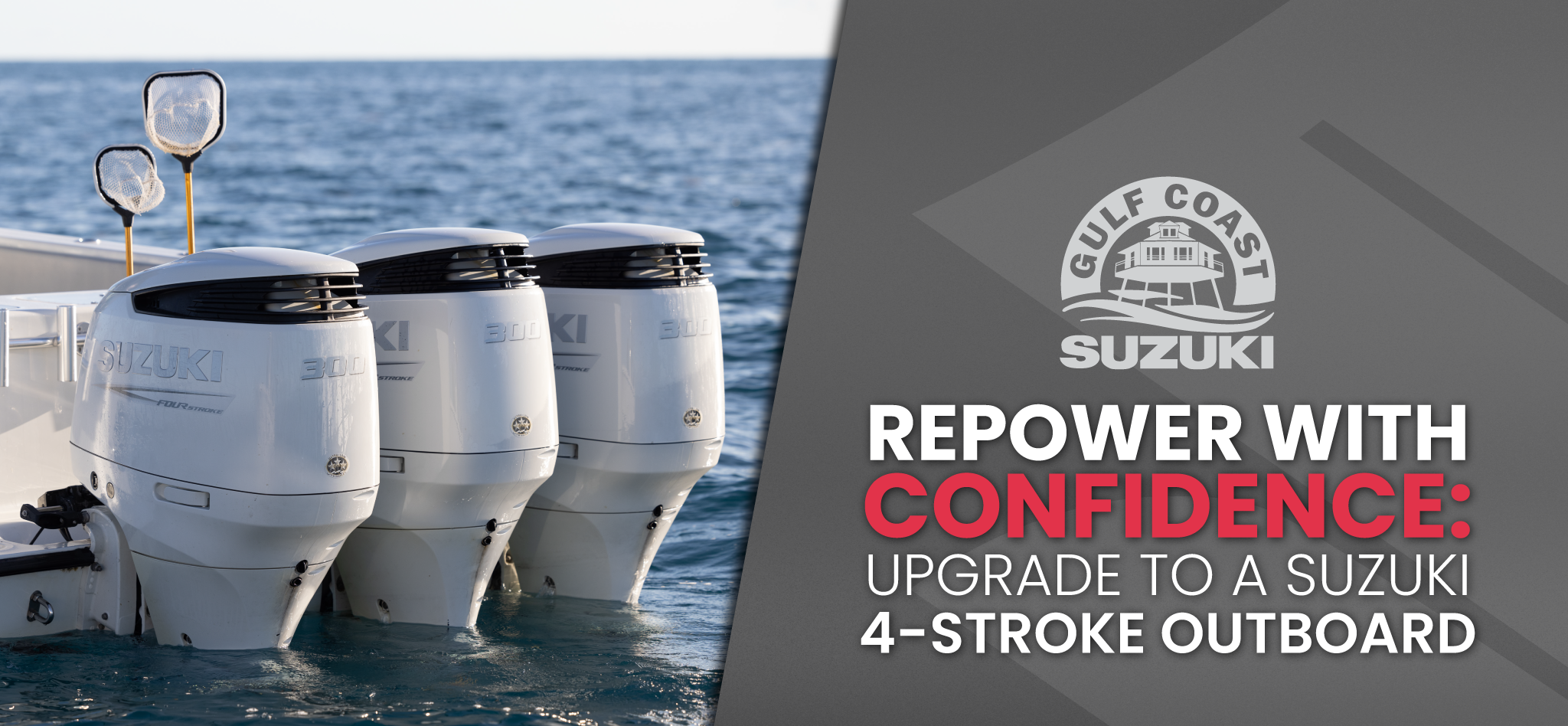 As an authorized Suzuki Marine dealer and the Gulf Coast’s go-to for repowers, the Gulf Coast Suzuki team has the experience and expertise to guide you to the right motor for your boat and your budget. Keep reading to learn why a 4-Stroke might be the right choice.